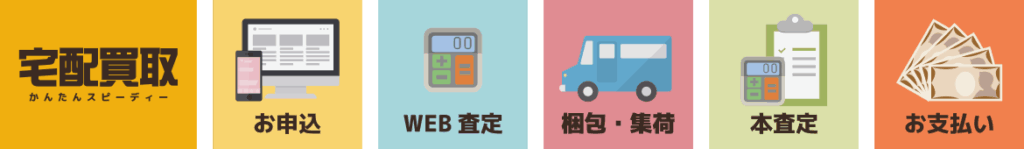 - 無料の梱包用ダンボールをご希望の方は事前査定連絡後にお送りする「宅配買取集荷お申込みフォーム」からご依頼ください。